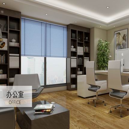 辦公室鋁百葉窗簾,簡潔大方,調光自由,上、下軌道采用優質鋁材壓制一體成型,涂層采用靜電粉末噴涂工藝。葉片表面光滑,手感極佳,色彩豐富,具有良好的回彈力及韌性。鋁材質簾片表面顏色采用國際標準規格的不含鉛涂層油漆、抗曬、抗熱度極高, 具有優越的調光性及遮蔽性、柔韌好、不易變形、可隔熱遮陽,阻擋紫外線。不因長時間的陽光照射而造成褪色。