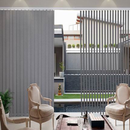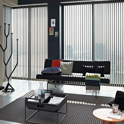 電動垂直簾為落地窗提供最精簡的設計理念,有多款布料及鋁質簾片供選擇。