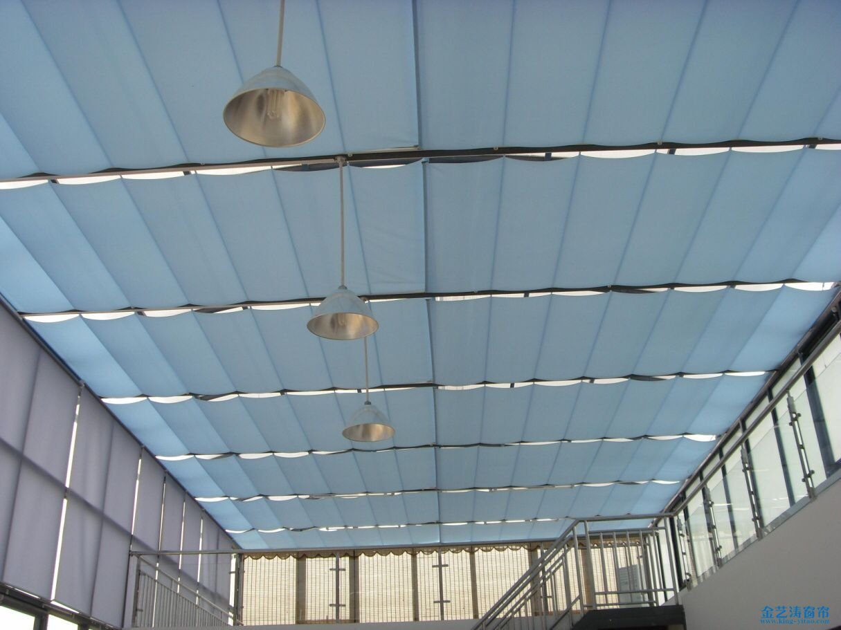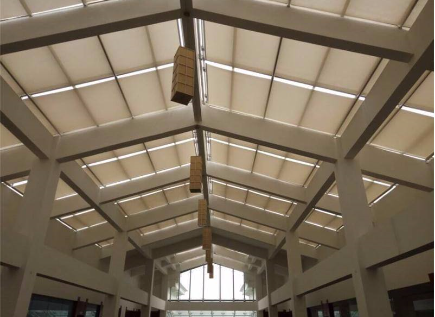 電動天棚簾,主要是運用在天窗方面的電動遮陽系統.卷軸式、折疊式電動天棚簾一般選用透光率不同的紡織品遮陽,葉片翻轉式遮陽系統一般采用垂直片、百葉簾片,通過葉片翻轉控制陽光進入室內的比例,達到遮陽效果.
