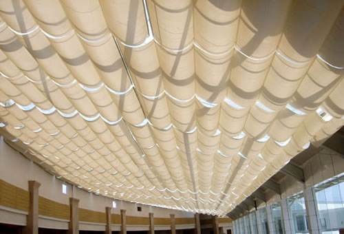 FCS天棚簾系統(tǒng)被打開時,遮陽面料呈波浪狀。