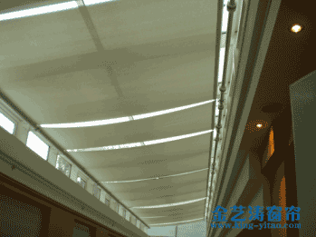 FSS天棚簾系統主要有管狀電機和彈性張力系統組成。一端為驅動軸,內裝管狀電機;另一端為從動軸,內裝彈簧機構,電機正轉帶動面料前行,另一端的彈簧逐漸收緊,將面料張挺,電機反轉彈簧逐漸放松,遮陽面料卷回。其操作簡便,電機工作時噪音小,運行平穩。